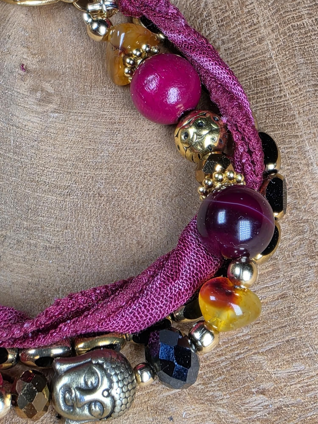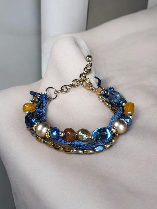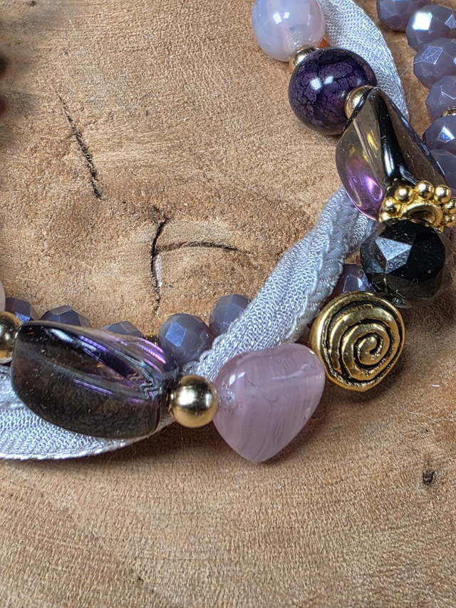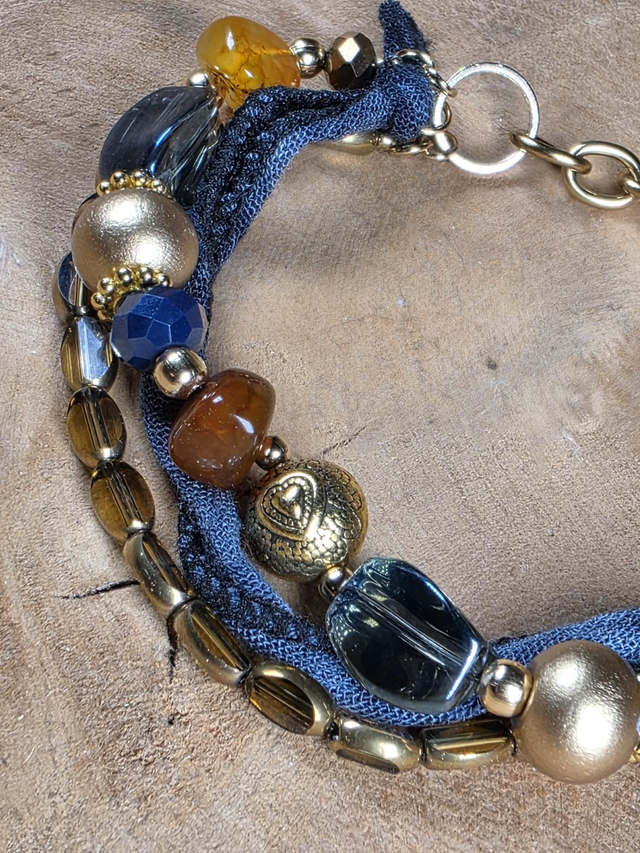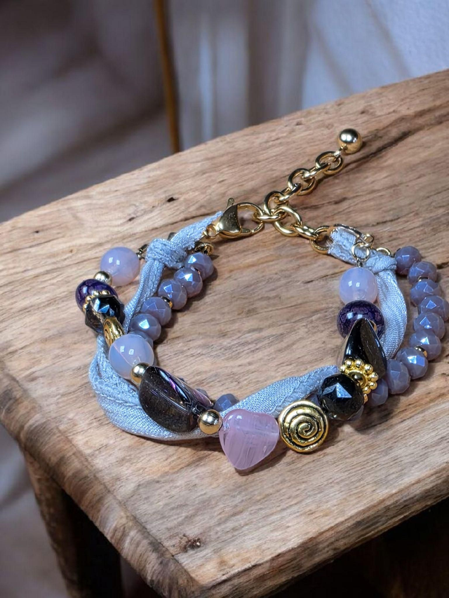 Mit Liebe zum Detail handgefertigt, vereint es ausgewählte Materialien zu einem harmonischen Zusammenspiel: vergoldeter Edelstahl, edle Glas- und Facettenperlen, feine Edelsteine und ein farblich abgestimmtes Band, das jedem Design seinen eigenen Charakter verleiht.
