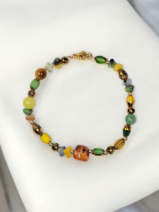Dieses Armband vereint die natürliche Schönheit echter Edelsteine mit feinen, goldenen Akzenten.